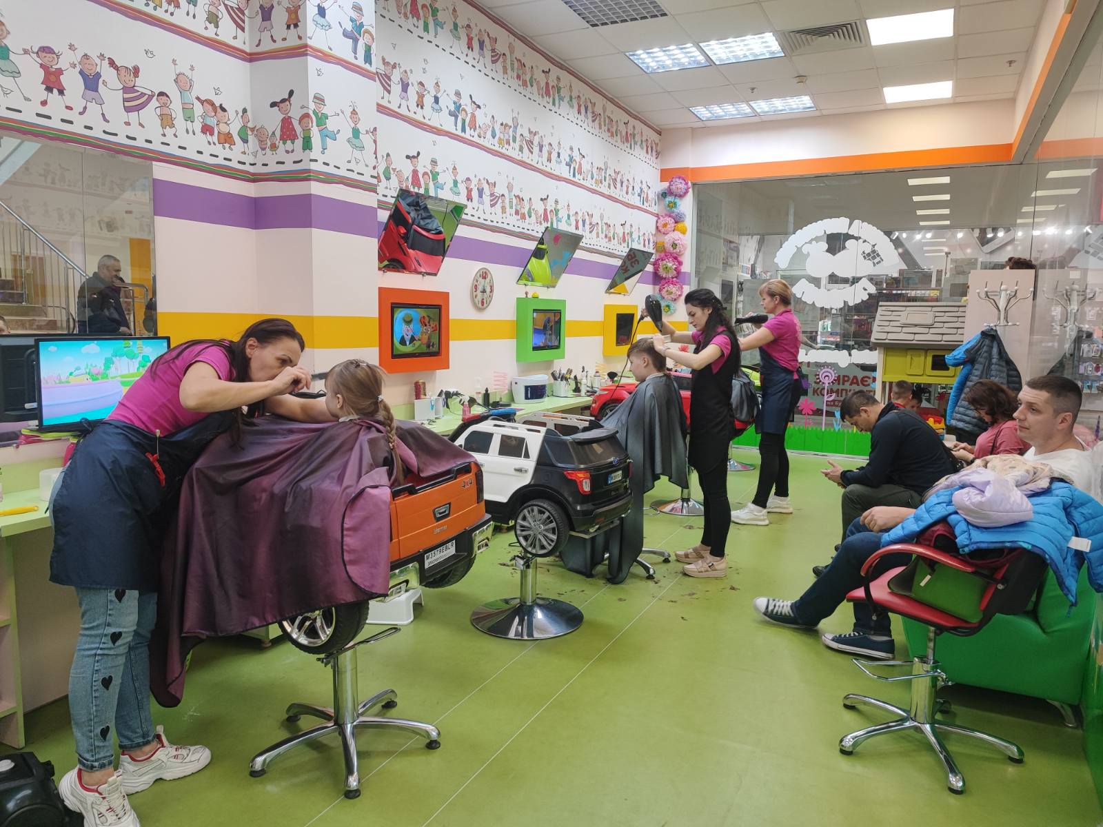 Вигідні умови для сімейної стрижки. Дивовижно барвистий інтер’єр перетворить процес догляду за волоссям в захоплюючу розвагу для дітей та їх батьків.